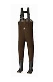 Pro Line Neoprene Chest Waders NW9301-T ? Neoprene Chest Waders? 3.5MM neoprene lightweight, insulated, snug fit? Each wader is air and water tested to assure waterproof? All seams are butt cemented, stitched and sealed? Removable suspenders so wader upper can be rolled down? Quick release buckles? Large outside pocket? Repair kit and instruction included? Double knee patchesRubber Boot Foot? All vulcanized rubber construction? Completely insulated with thick sponge, rubber? 200 grams of ThinsulateTM Insulation? The rubber outsole style features a deep cleated design for traction